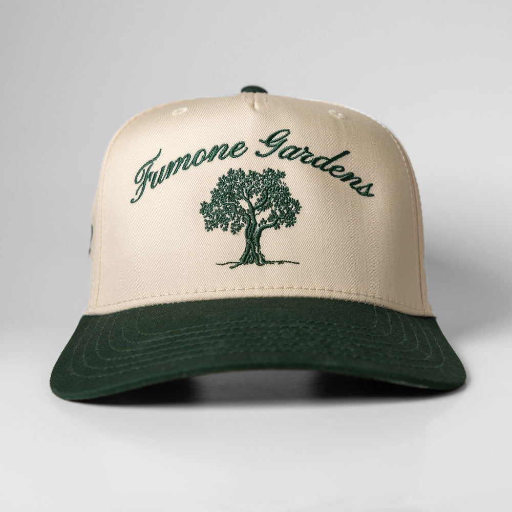 Natural and dark green five-panel hat with Fumone Gardens logo embroidery Structured Cap 65% Polyester...